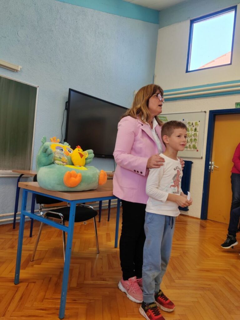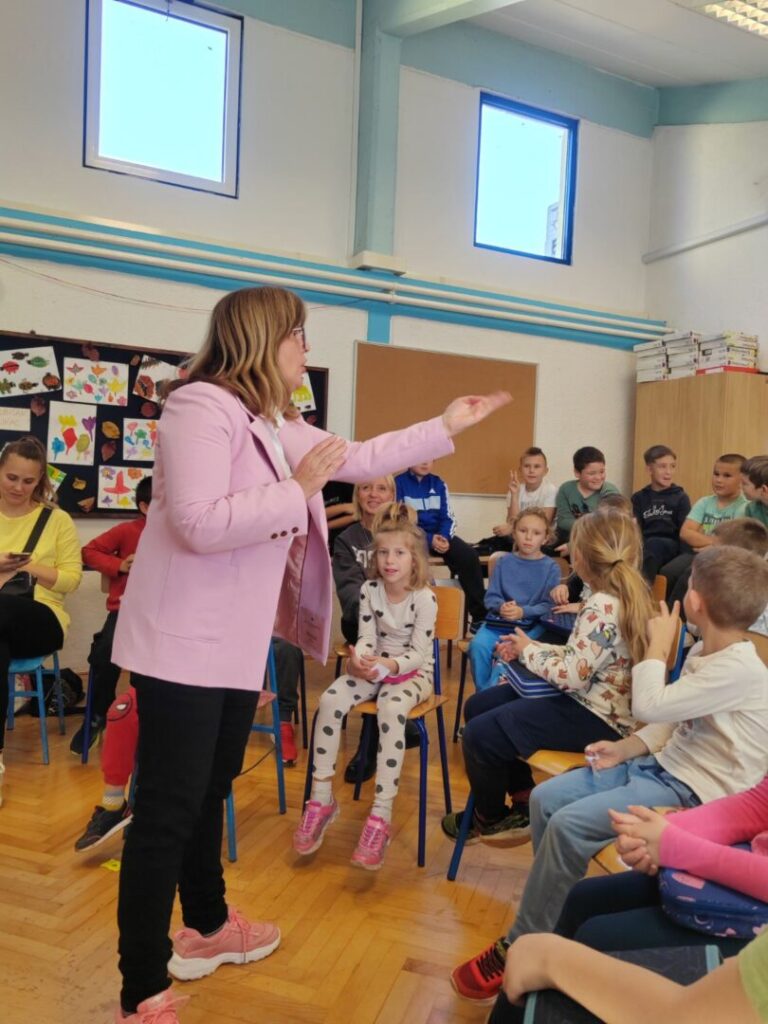 Učenici od 1. do 4. razreda s velikim su zanimanjem slušali priču o neobičnom i simpatičnom Tončiću, postavljali pitanja i uživali u razgovoru s autoricom.
