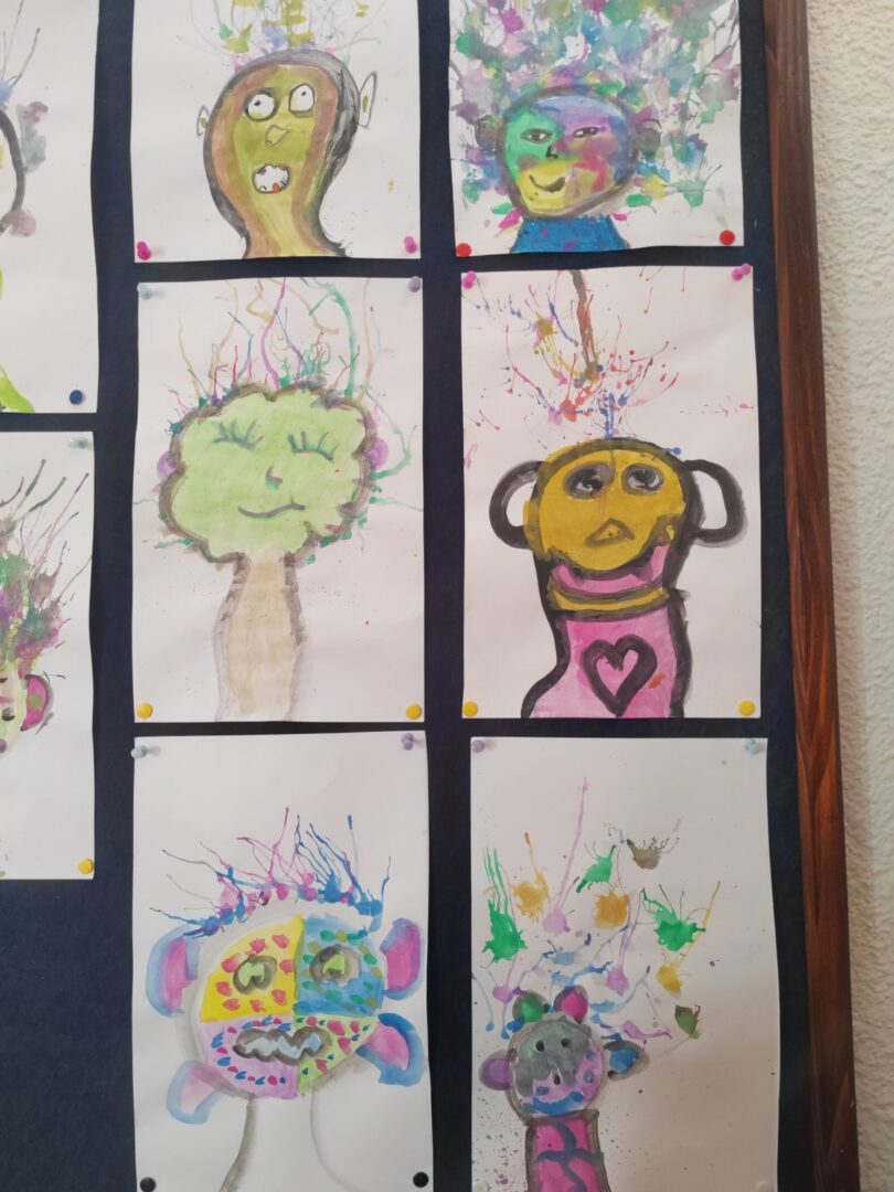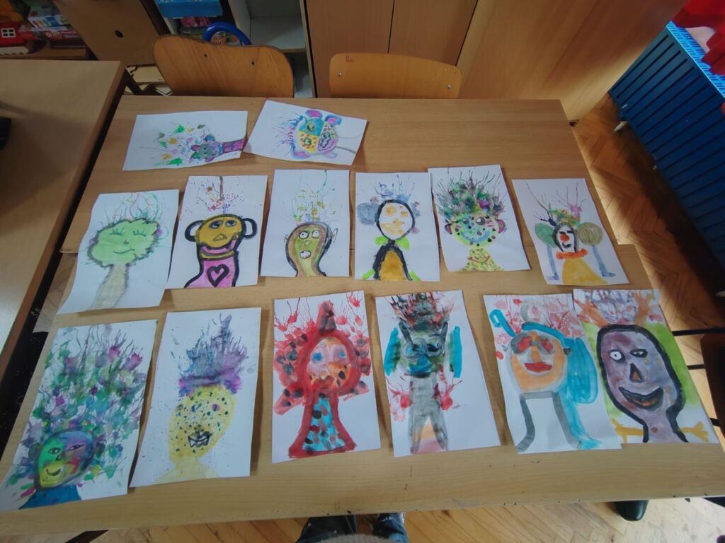 Maškare su nam donijele pravu malu umjetničku radionicu – svatko je nacrtao svoju masku, a posebnu zabavu izazvala je izrada kose puhanjem boje kroz slamke. Nastale su maštovite, šarene i jedinstvene maske, baš poput nas! I da, ne smijemo izostaviti ni našeg razrednog klauna koji nam je unio sreću i veselje u razred, a kojeg smo složili od papira u boji spojenog u lanac!